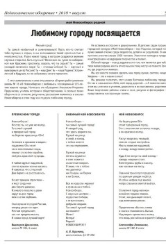 - Публикация двух моих авторских стихотворений в газете "Педагогическое обозрение", выпуск № 6 (191) к 125-летию города Новосибирска. Организатор: Депортамент образования Мэрии города Новосибирска Городской центр развития образования,